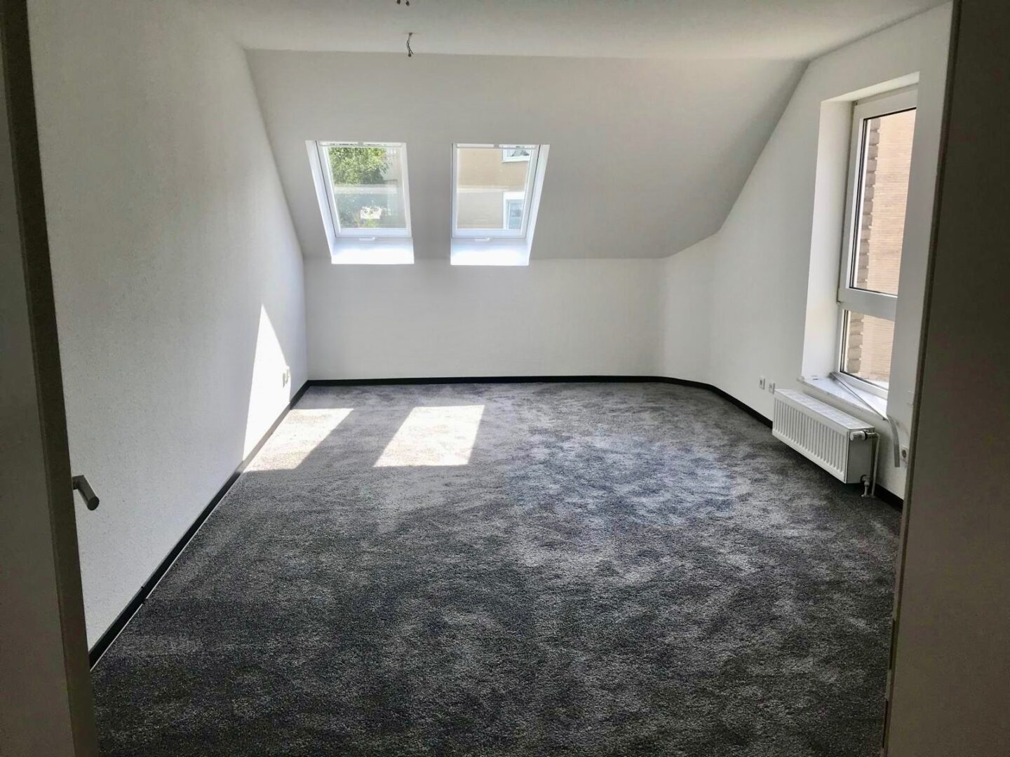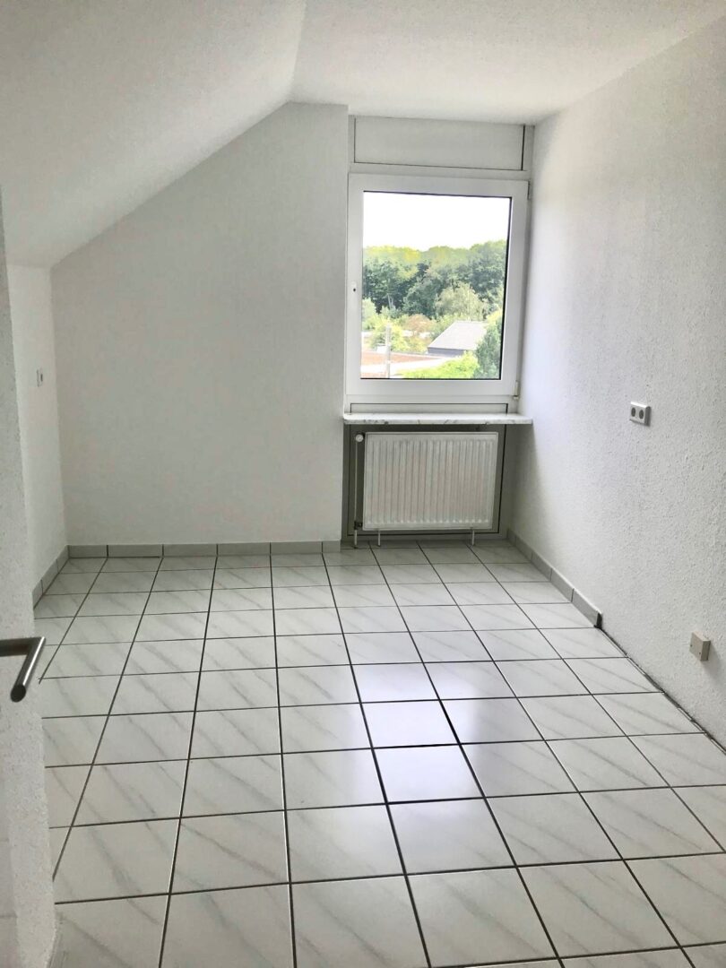 Über eine Treppe im Flur gelangt man in das Dachgeschoss, das mit einem weiteren großzügigen und hellen Zimmer punktet. Dieser Bereich eignet sich perfekt als zusätzliches Schlafzimmer, Gästezimmer oder auch als Homeoffice.