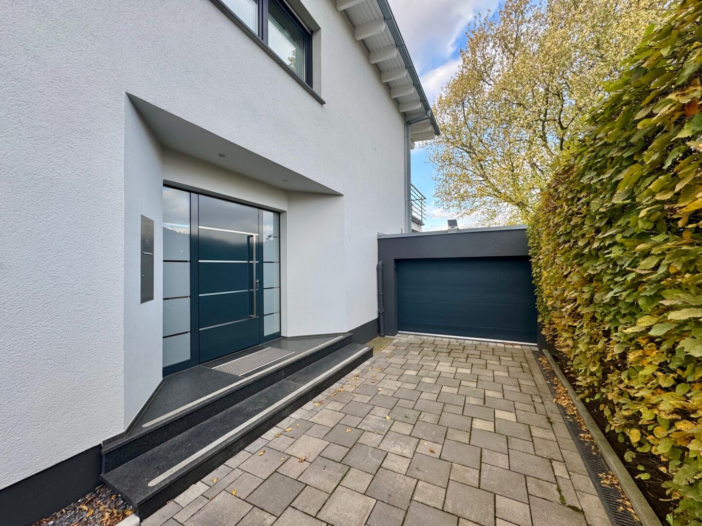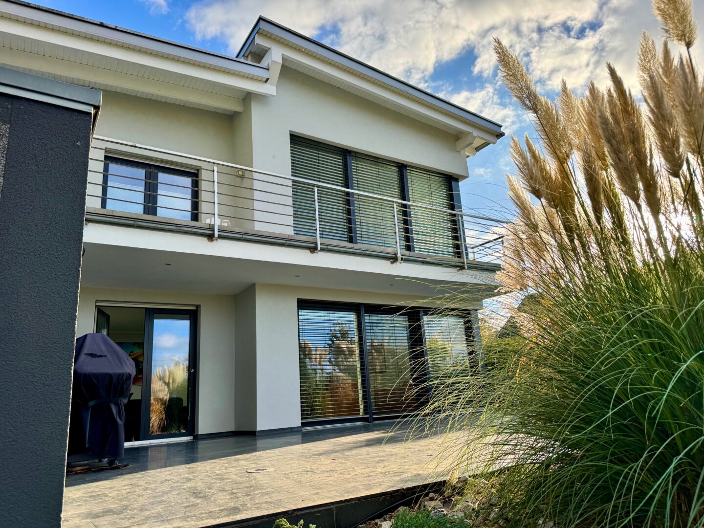 Der Garten wurde 2023 umfassend neugestaltet und präsentiert sich in perfektem Zustand. Rollrasen, strukturierte Bepflanzung, Sichtschutzelemente, moderne Beleuchtung, zusätzliche Treppenanlage und eine integrierte Wasserzisterne sorgen für ein gepflegtes, nachhaltiges Gesamtbild. Die Beleuchtung im Garten wird teilweise über das Loxone-System, teilweise über einen separaten Timer und Lichtsensor gesteuert. Ein Rasenmähroboter (Gardenia, App-gesteuert) sorgt für eine komfortable Pflege.