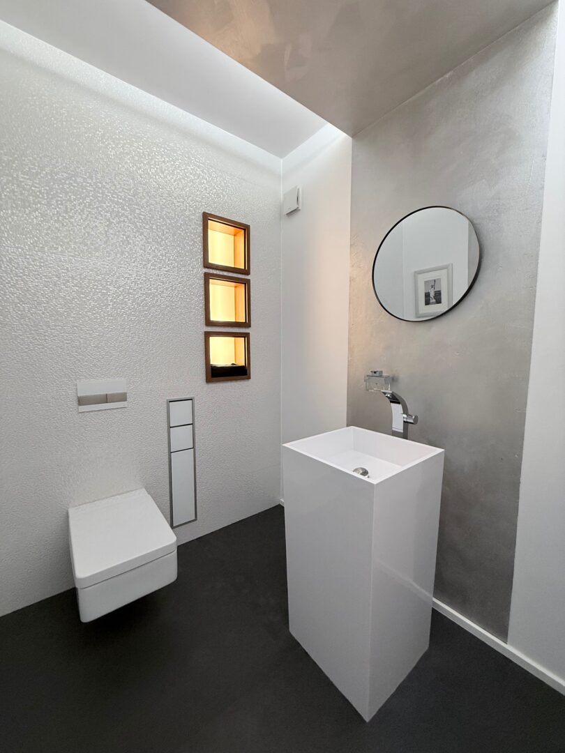 Im Kellergeschoss stehen ein vollwertiges Büro, ein Gästezimmer, ein separates Gäste-WC sowie ein weiteres Bad zur Verfügung. Zusätzlich gibt es einen Abstellraum und Technikbereich – ideal für Homeoffice, Besucher oder als zusätzlicher Wohnbereich.