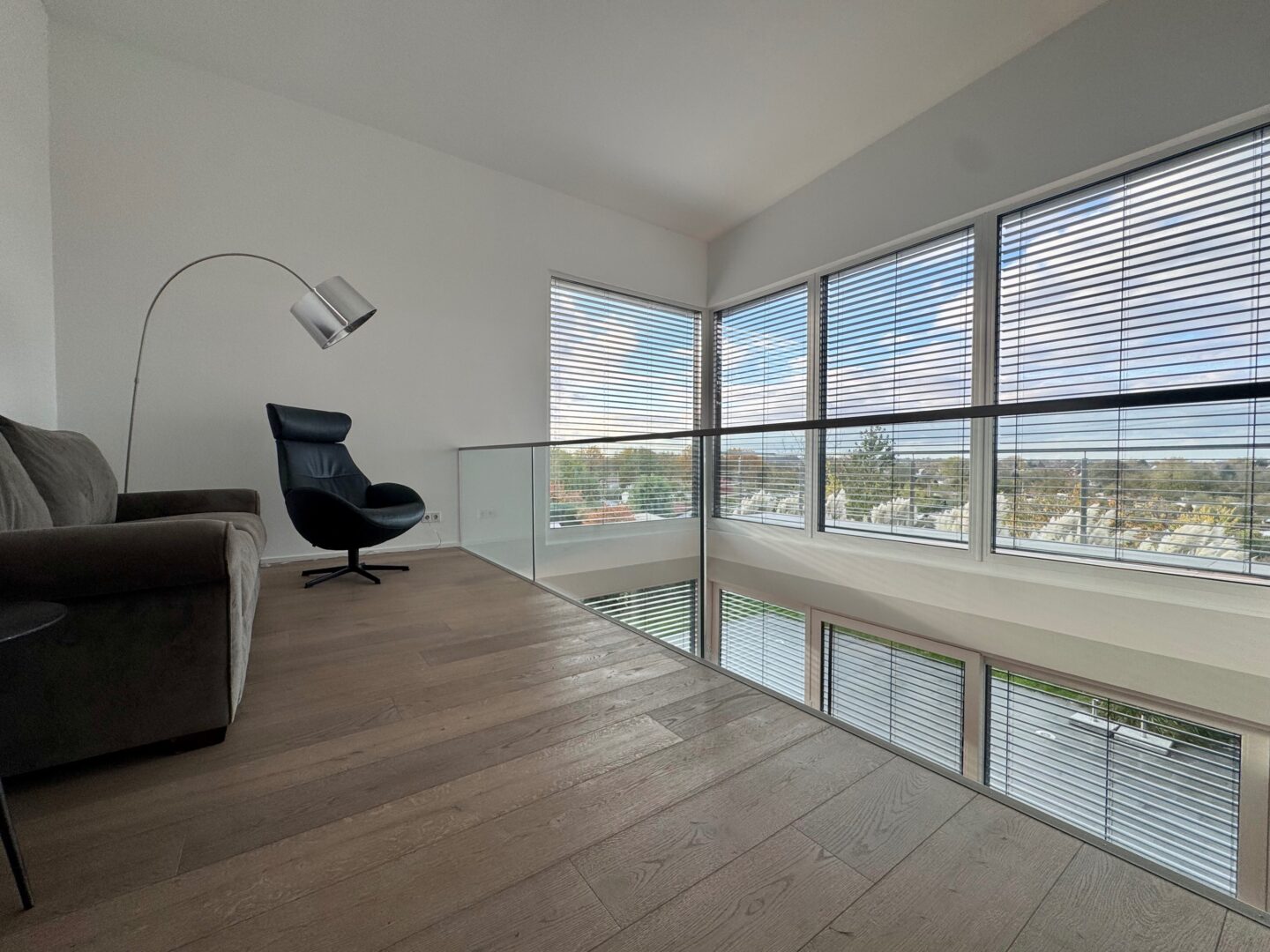 Das Obergeschoss bietet ein stilvolles Hauptbad mit bodengleicher Dusche und freistehender Badewanne, ein Kinderzimmer, eine offene Galerie sowie den Elternbereich mit Schlafzimmer und angrenzender Ankleide. Die Räume sind durchdacht geschnitten, hell und modern gestaltet.